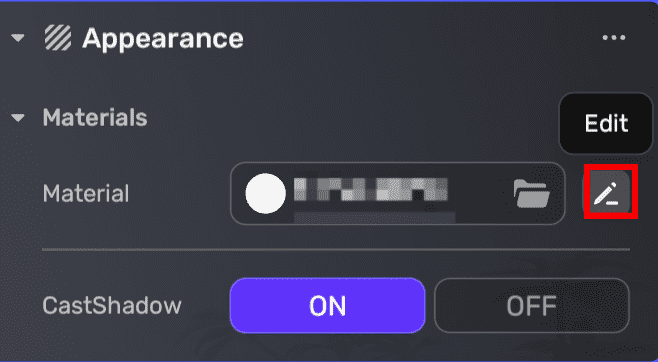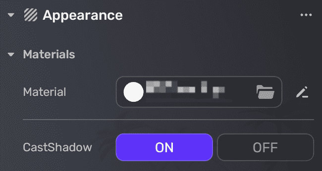 外观(Appearance)组件定义物体的视觉表现,可自定义材质和投射阴影等属性。