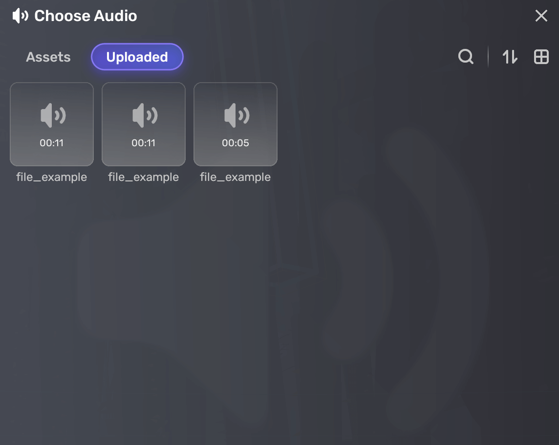 上传后,可通过 我的资源 > 已上传文件(> 音频)找到音频。