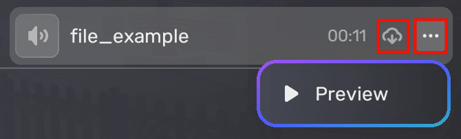 在音频片段旁点击 下载 按钮即可使用,也可通过 更多 按钮选择 预览进行试听。