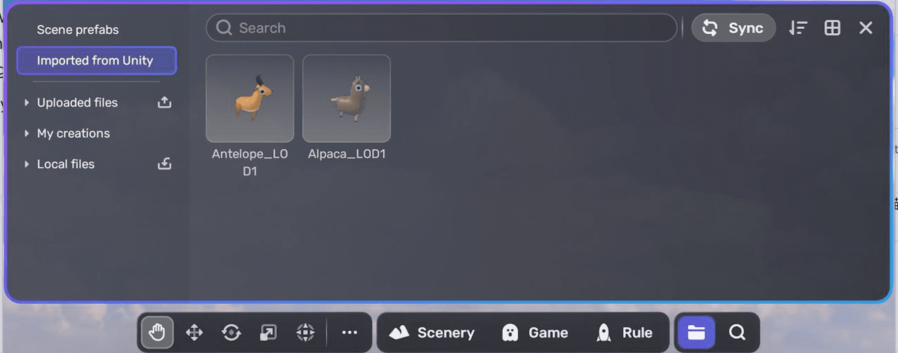 在 Studio 中通过 我的资源 > 从 Unity 导入 找到已导入的预制件。