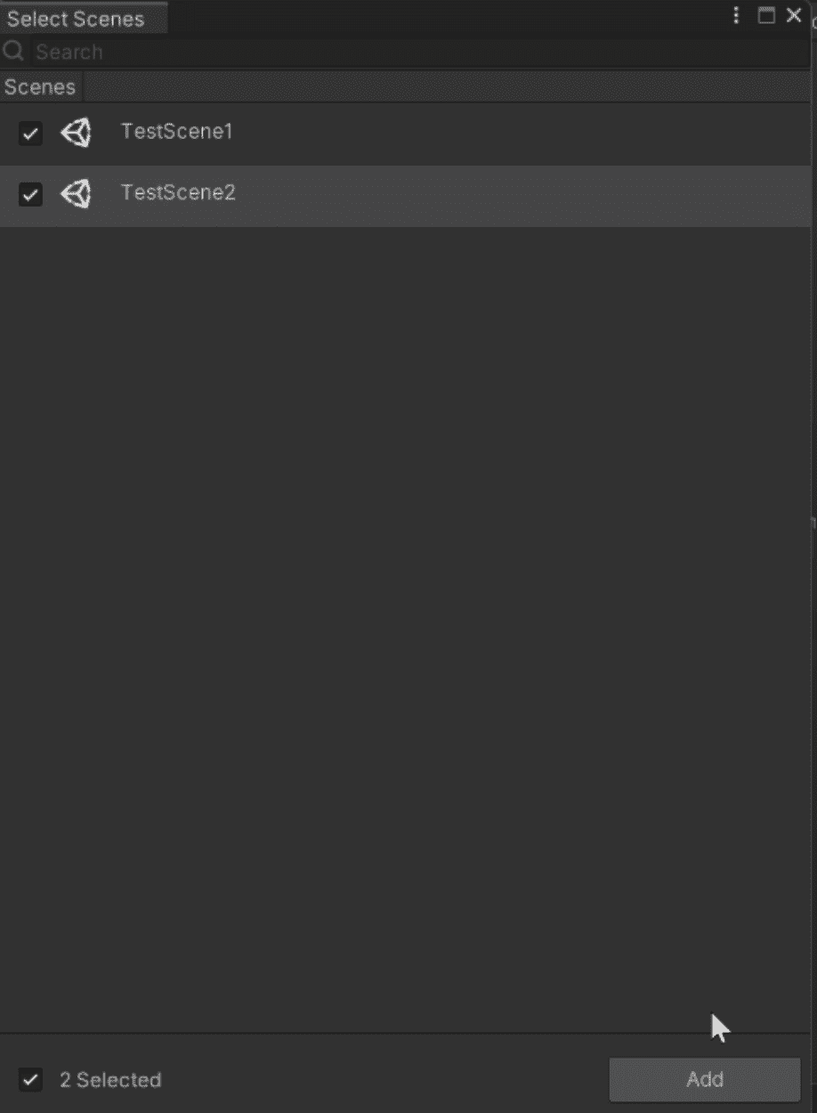 所有 Unity 场景将以列表形式显示。选择要导入到 Studio 的场景并点击 Add 确认。